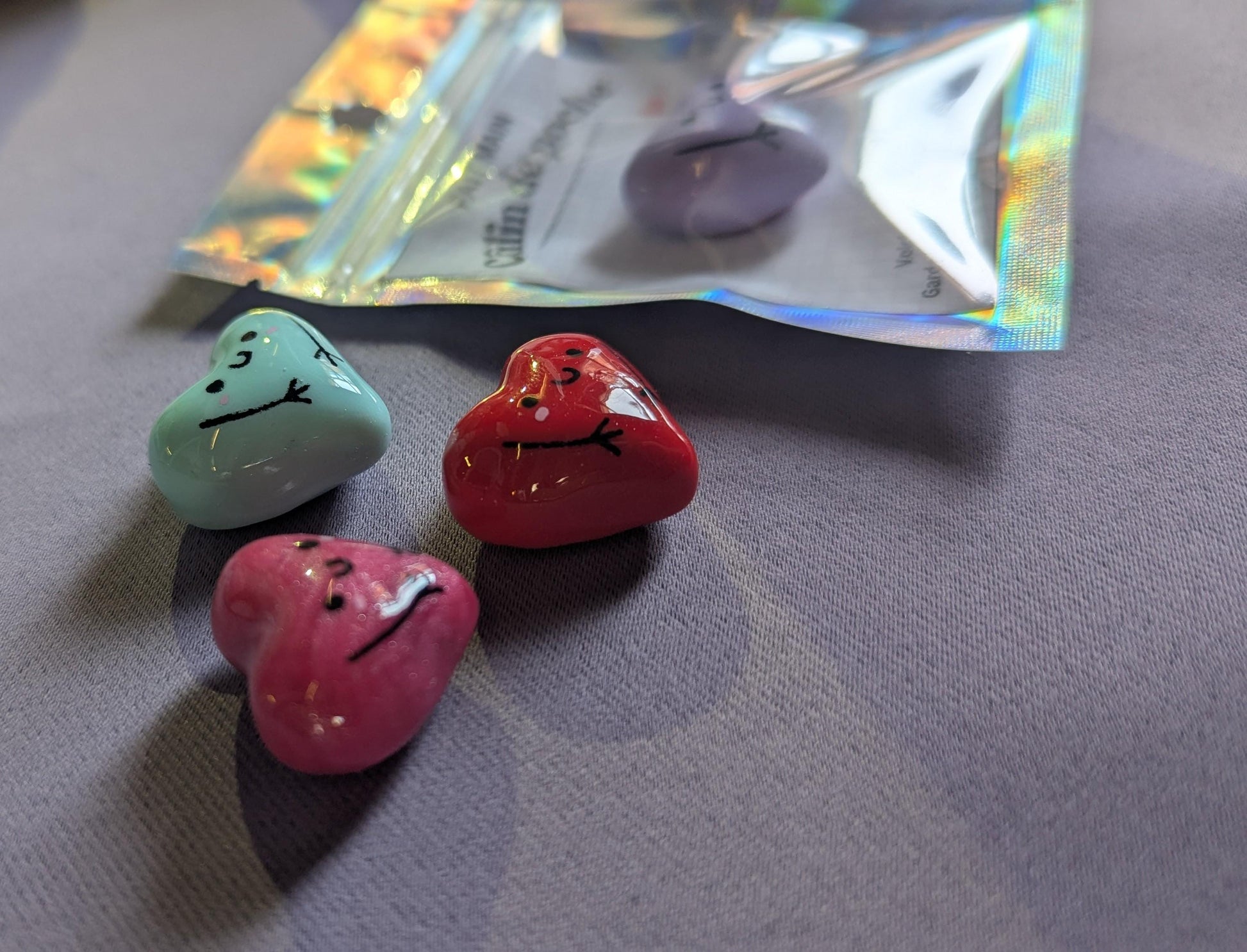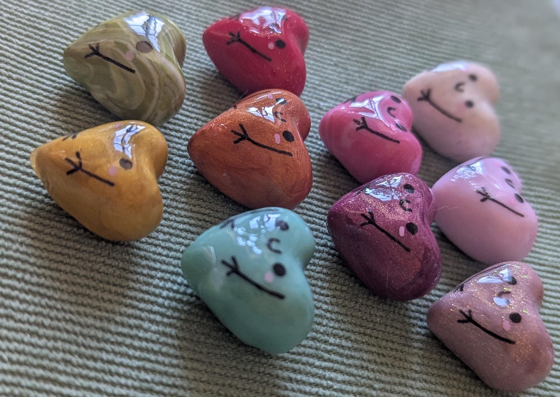 Les câlins de poche sont réalisés à la main avec modelé à la main en pâte fimo puis recouvert de résine UV. Les couleurs peuvent légèrement varier selon mes arrivages, et il n'y en aura pas deux pareil !