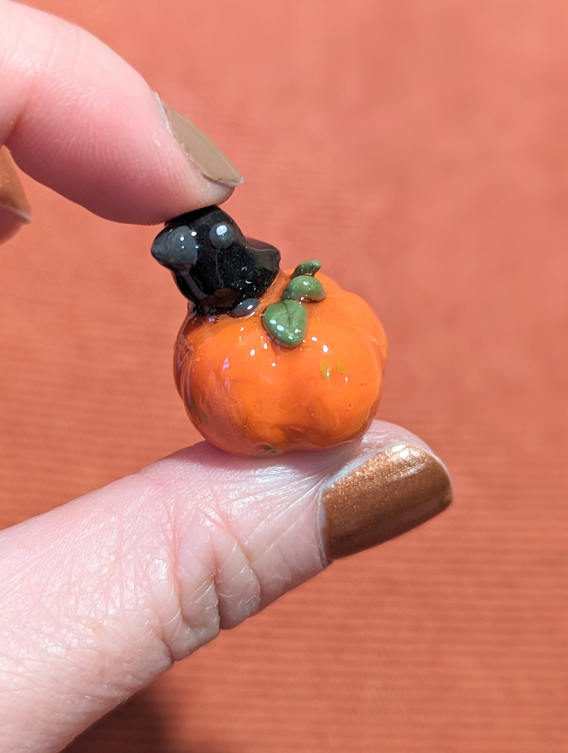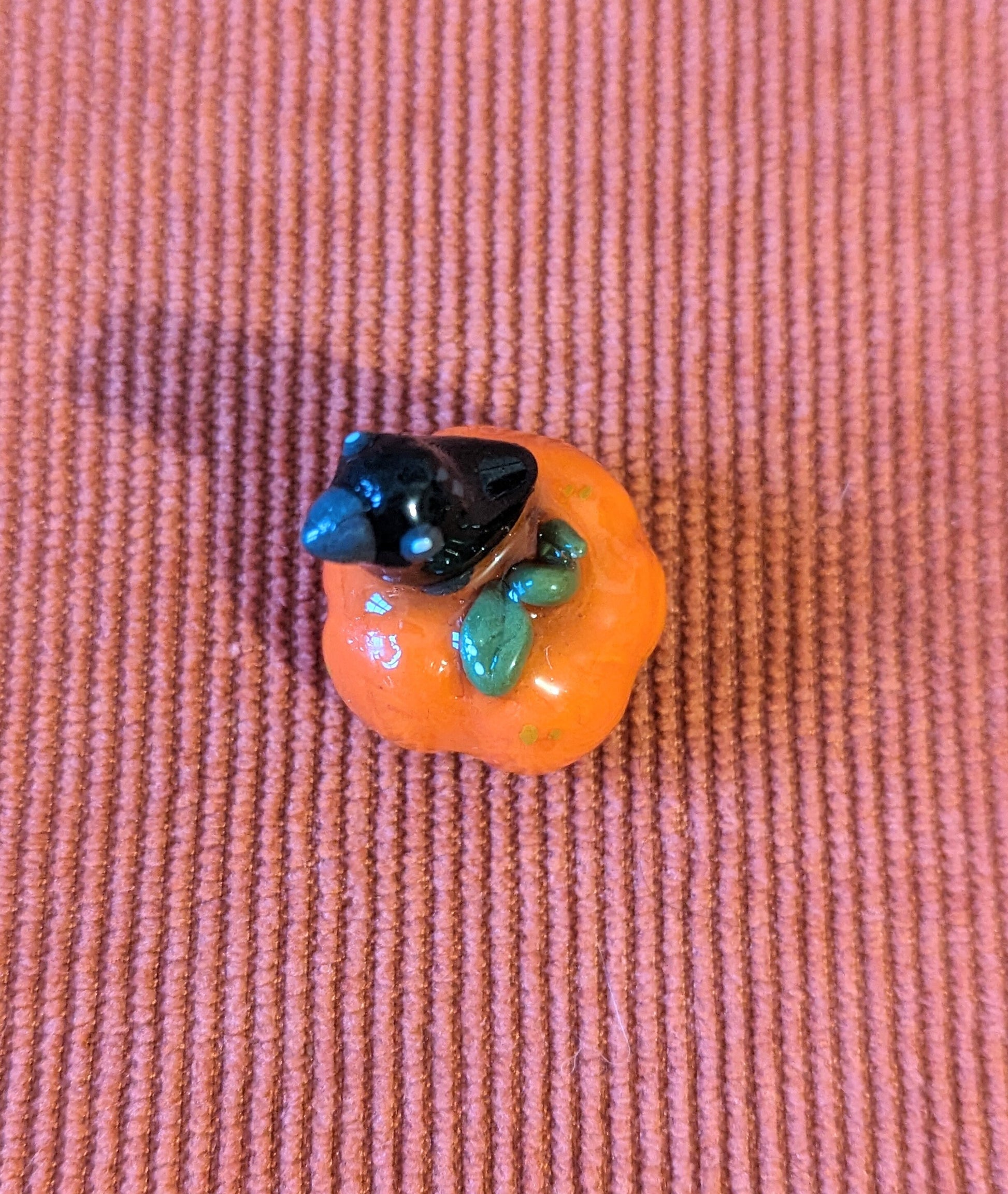 Ce corbeau posé sur sa petite citrouille feront une mini déco d'automne très mignonne! Entièrement modelé à la main et recouvert d'un vernis UV qui imite la porcelaine, ce corbeau fera également un beau cadeau pour les amoureux de l'automne
