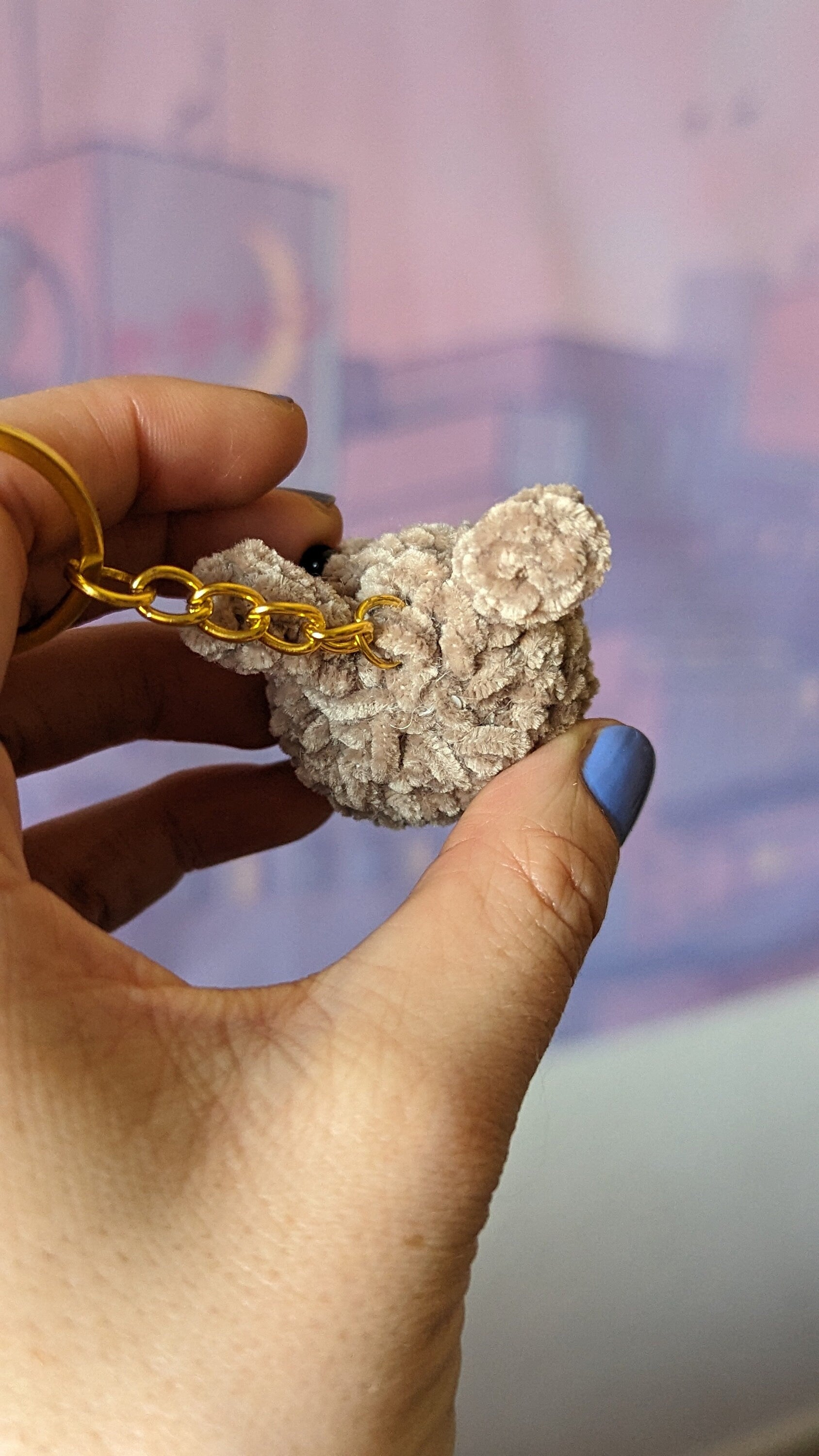 Cette charmante petite peluche lapin toute douce est réalisée entièrement à la main en crochet avec du fil chenille de la marque DMC. Monté en porte clé, il fera un parfait compagnon trop mignon sur vos clé ou votre sac.