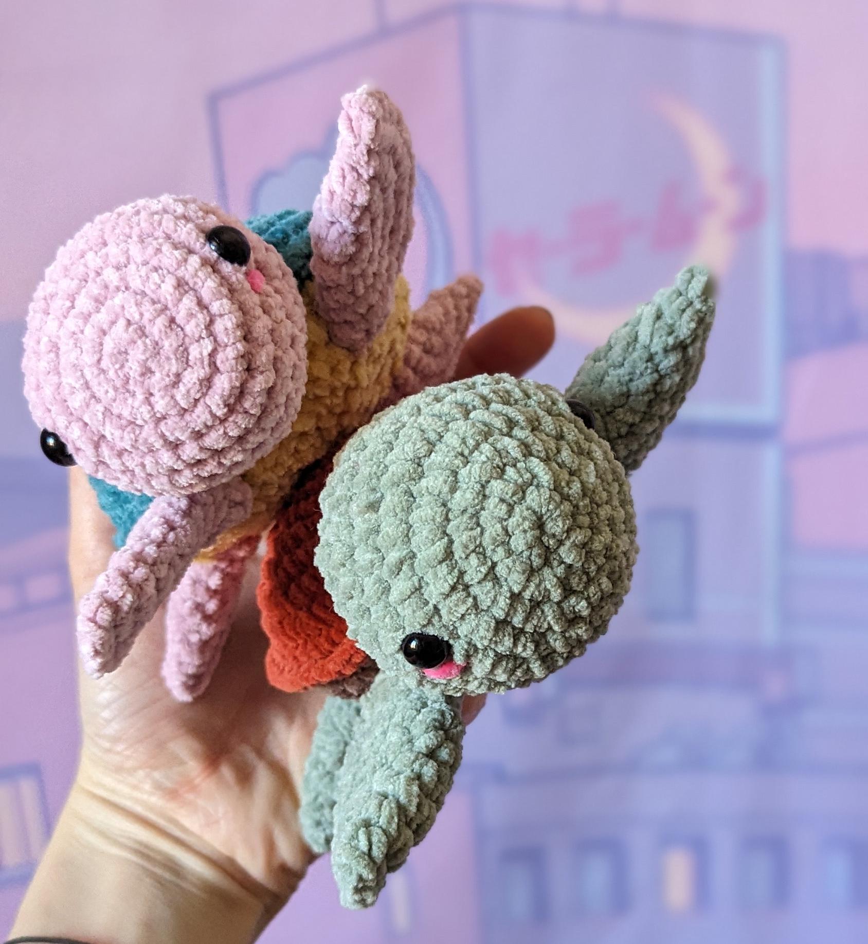 Cette charmante petite peluche tortue de mer toute douce est réalisée entièrement à la main en crochet avec du fil chenille de la marque Phildar, certifié oeko-tex.