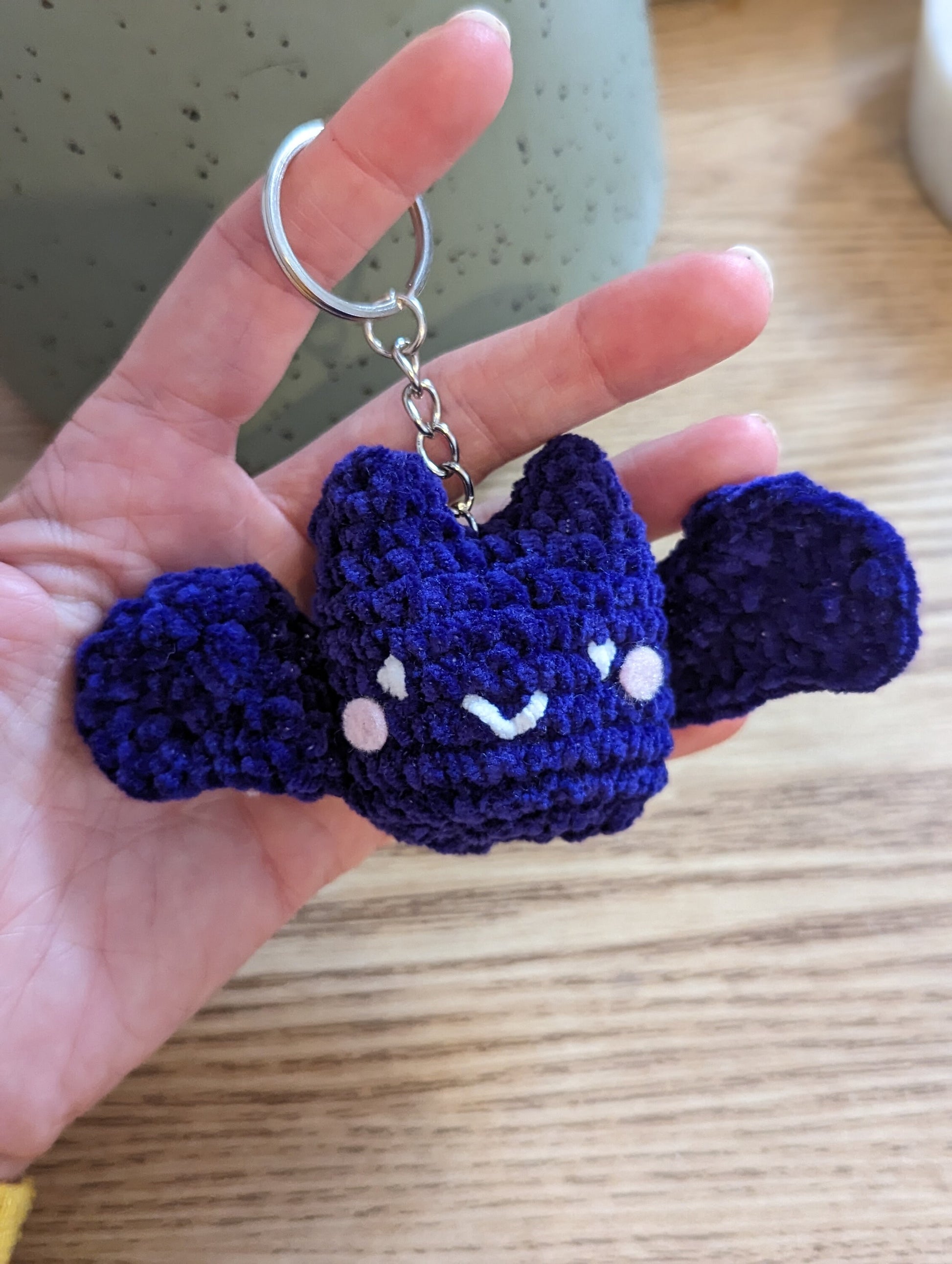 Cette charmante petite peluche de chauve-souris toute douce est réalisée entièrement à la main en crochet avec du fil chenille de la marque DMC. Grace à son attache porte clé, elle vous suivra partout , ou fera un parfait compagnon sur votre bureau.